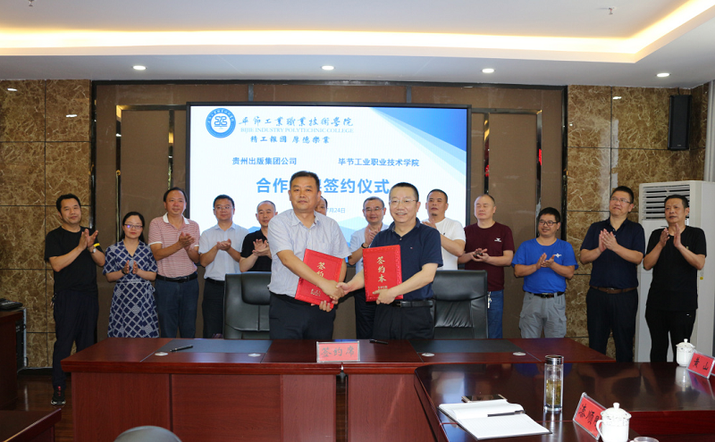 7月24日早上,我院與貴州出版集團公司在同心樓三樓會議室舉行合作框架協(xié)議簽約儀式。貴州出版集團公司黨委副書記常勇,貴州省新華書店有限公司黨委副書記、總經(jīng)理李健,畢節(jié)市新華書店有限公司總經(jīng)理王健,六盤水市新華書店有限公司總經(jīng)理鐘子杰,畢節(jié)工業(yè)職業(yè)技術(shù)學院黨委副書記、院長邱國援,黨委副書記付善華,黨委委員、副院長吳家文,黃河,黃文碧及相關(guān)部門負責人出席儀式。簽約儀式由吳家文主持。