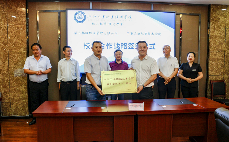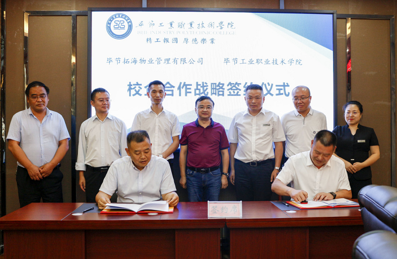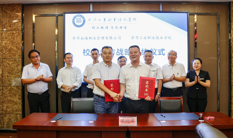 為深入貫徹落實(shí)習(xí)近平總書記對技能人才工作重要指示精神,切實(shí)做好新時代技能人才工作,9月3日,畢節(jié)拓海物業(yè)管理有限公司與畢節(jié)工業(yè)職業(yè)技術(shù)學(xué)院校企合作戰(zhàn)略協(xié)議簽訂儀式在學(xué)院同心樓三樓會議室舉行。畢節(jié)拓海物業(yè)管理有限公司總經(jīng)理?xiàng)钤聫?qiáng)、常務(wù)副總經(jīng)理邱鋒一行,學(xué)院黨委書記李涌,黨委副書記、院長邱國援,黨委委員、副院長吳家文、相關(guān)部門負(fù)責(zé)人及教師代表出席儀式。簽約儀式由邱國援主持。