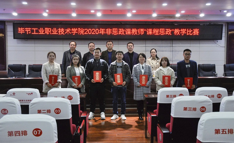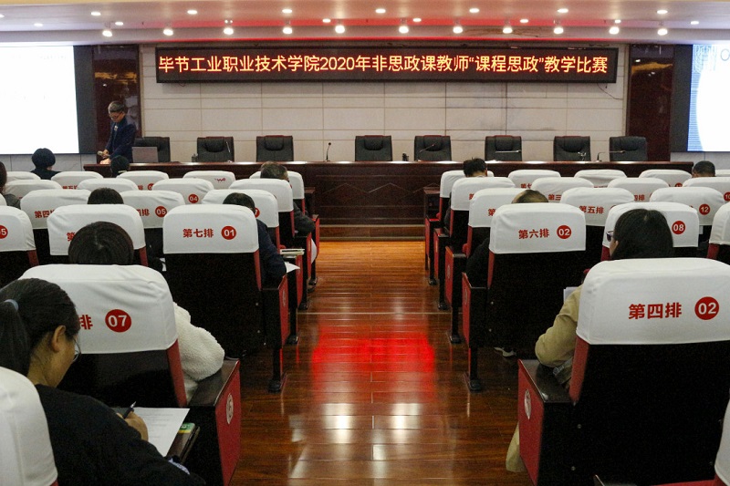 為深入學習貫徹習近平總書記關(guān)于教育的重要論述、全國教育大會精神,貫徹落實中共中央辦公廳、國務院辦公廳《關(guān)于深化新時代學校思想政治理論課改革創(chuàng)新的若干意見》《高等學校課程思政建設指導綱要》等文件精神,把思想政治教育貫穿人才培養(yǎng)體系,全面推進學院課程思政建設,發(fā)揮好每門課程的育人作用,提高學院人才培養(yǎng)質(zhì)量,培養(yǎng)擔當民族復興大任的時代新人。2020年10月14日下午,畢節(jié)工業(yè)職業(yè)技術(shù)學院在行政樓9樓會議室舉行2020年非思政課教師"課程思政"教學比賽,全院教職工觀摩了比賽。