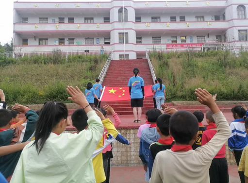 ▲志愿者和云峰小學(xué)同學(xué)一起進(jìn)行升旗儀式