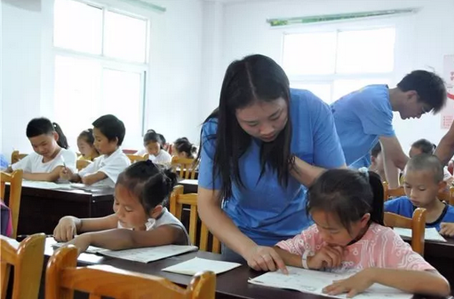▲志愿者輔導(dǎo)留守兒童