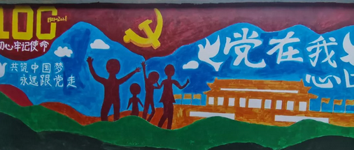 在為期10天的“三下鄉(xiāng)”社會(huì)實(shí)踐中,實(shí)踐隊(duì)員們把黨史學(xué)習(xí)教育帶到了田間地頭家中墻上。實(shí)踐隊(duì)員們走進(jìn)田間地頭,和當(dāng)?shù)剜l(xiāng)親們一起學(xué)習(xí)交流黨的發(fā)展歷程,到家中聆聽(tīng)當(dāng)?shù)亍罢稀焙屯宋槔媳?、老黨員講述他們的親身經(jīng)歷和黨的光輝歷程并宣傳黨的政策,與鄉(xiāng)親們一起溝通鄉(xiāng)村振興的意見(jiàn)和建議。同時(shí),實(shí)踐隊(duì)員們還將黨的光輝歷史和黨的政策、生態(tài)文明建設(shè)、鄉(xiāng)村振興、惠農(nóng)政策等用墻繪的方式畫(huà)在墻上?!皩?shí)踐隊(duì)員們通過(guò)這種樸實(shí)、接地氣、通俗易懂的方式將黨史學(xué)習(xí)教育和黨的政策送到了田間地頭、村民家中,打破了傳統(tǒng)的宣講模式,增強(qiáng)了廣大村民振興鄉(xiāng)村的信心?!笔敬羼v村書(shū)記明正興說(shuō)。