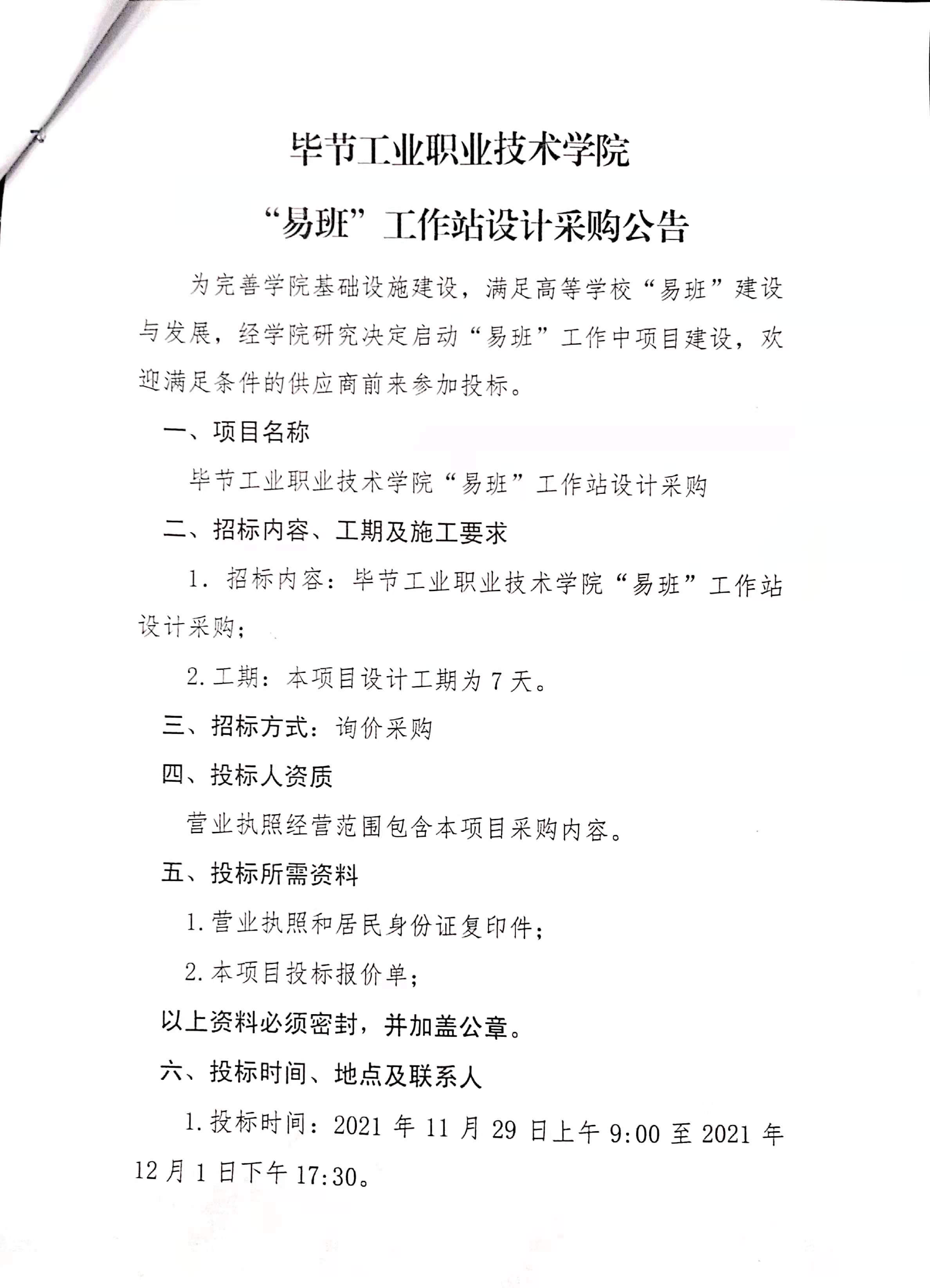 畢節(jié)工業(yè)職業(yè)技術(shù)學(xué)院“易班”工作站設(shè)計(jì)采購公告
