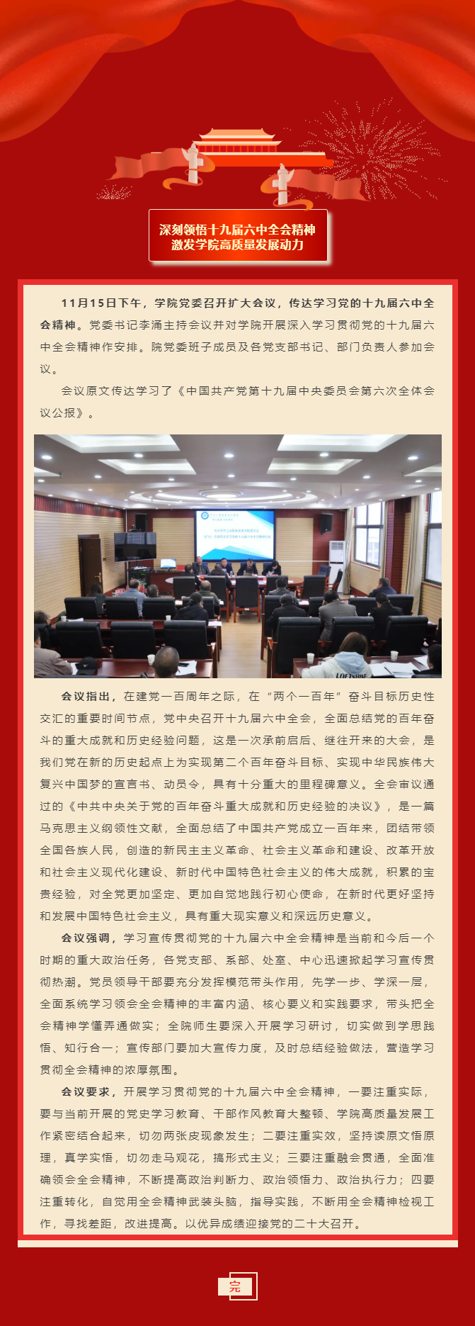 中共畢節(jié)工業(yè)職業(yè)技術(shù)學(xué)院委員會(huì)召開擴(kuò)大會(huì)議,傳達(dá)學(xué)習(xí)黨的十九屆六中全會(huì)精神
