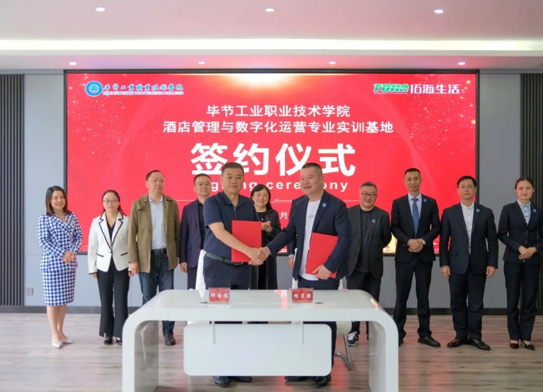 5月12日,畢節(jié)工業(yè)職業(yè)技術學院拓海學院一周年成立儀式暨畢節(jié)工業(yè)職業(yè)技術學院酒店管理與數(shù)字化運營專業(yè)實訓基地簽約儀式在拓海學院會議室舉行。學院黨委副書記、院長邱國援,黨委委員、副院長黃瑛、黃河、吳家文、黃文碧,拓海學院名譽院長、拓海生活集團總裁楊月強,拓海學院院長林彬出席儀式,拓海集團相關領導、員工代表及學院社會服務系師生代表參加儀式。 儀式現(xiàn)場 邱國援在致辭中指出,校企雙方共建拓海學院實訓基地,為相關專業(yè)學生提供了理實一體化教學場地和實習實訓平臺,改善了物業(yè)管理、酒店管理等專業(yè)的教學、實訓條件,使我院辦學條件、人才培養(yǎng)體系和教學質量得到不斷提高。同時,拓海集團積極參與物業(yè)管理專業(yè)人才培養(yǎng)方案修訂,從行業(yè)、企業(yè)角度提出了很多人才培養(yǎng)的意見建議,邀請行業(yè)專家來校講學,親自授課,使學生專業(yè)知識得到有力提升,使物業(yè)管理專業(yè)人才培養(yǎng)體系更加符合行業(yè)需求。下一步,希望校企雙方繼續(xù)深化校企合作機制、持續(xù)擴大合作范圍、協(xié)同提升合作質量,充分發(fā)揮拓海生活服務集團在物業(yè)管理方面的專業(yè)優(yōu)勢,在人才培養(yǎng)方案、課程教學、實習實訓、教師培養(yǎng)等方面提供企業(yè)建議和技術指導,在教育教學、學生管理、素質培養(yǎng)、技能提升等方面與學院交換經驗,提升教師專業(yè)素質,強化學生技能提升,推進“工學結合”教學模式,共同提高學院育人質量。 邱國援在儀式上致辭 楊月強表示,過去一年,校企雙方本著優(yōu)勢互補、資源共享、互惠雙贏、共同發(fā)展的原則,對校企合作模式進行了深層次的探索、創(chuàng)新與實踐,拓海學院的成立不僅推動了產教融合,也為學生提供了優(yōu)質的實訓基地,為企業(yè)提供了強有力的人才保障。下一步,企業(yè)將繼續(xù)聯(lián)手學院不斷創(chuàng)新,共同培養(yǎng)高素質技術技能型人才,構建校企合作雙贏局面,助推職業(yè)教育改革和地方經濟社會高質量發(fā)展。 楊月強在儀式上講話 儀式上,邱國援代表學院與拓海生活集團簽訂了《畢節(jié)工業(yè)職業(yè)技術學院酒店管理與數(shù)字化運營專業(yè)實訓基地(中心)建設合作協(xié)議》。學院與拓海生活集團將再次攜手,共建畢節(jié)工業(yè)職業(yè)技術學院酒店管理與數(shù)字化運營專業(yè)實訓基地,共同承擔科研項目、實現(xiàn)信息共享,培養(yǎng)更多高質量的技能人才,為畢節(jié)全面推進鄉(xiāng)村振興提供有力的人才支撐。 簽約儀式現(xiàn)場 拓海學院院長林斌、社會服務系主任呂振欣為優(yōu)秀學生羅達麗、李定奎頒發(fā)榮譽證書 優(yōu)秀學生代表羅達麗發(fā)言 儀式中的精彩節(jié)目