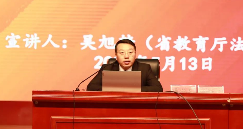 5月13日下午,畢節(jié)工業(yè)職業(yè)技術(shù)學(xué)院邀請(qǐng)省教育廳法律顧問吳旭夢(mèng)博士在學(xué)院會(huì)議中心開展習(xí)近平法治思想專題宣講,黨委委員、宣傳統(tǒng)戰(zhàn)部部長(zhǎng)余斌主持宣講,學(xué)院300余名師生參加學(xué)習(xí)。