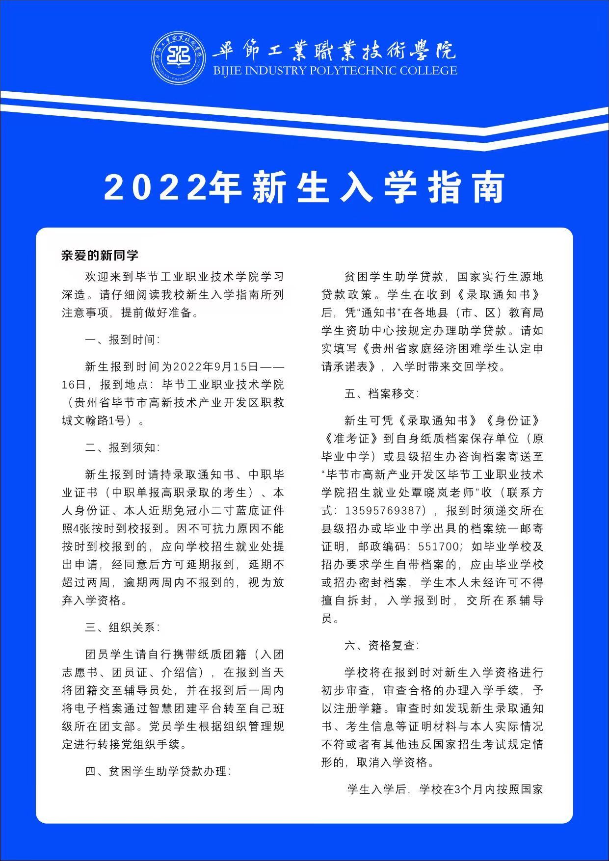 畢節(jié)工業(yè)職業(yè)技術(shù)學院2022年新生入學指南