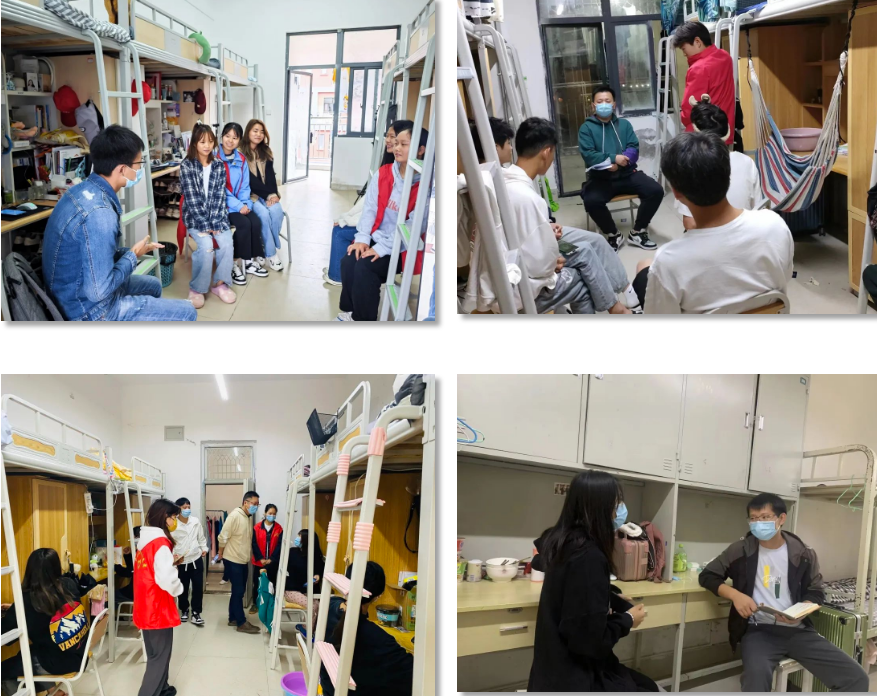 在靜默管理期間,學(xué)院領(lǐng)導(dǎo)、教師深入學(xué)生宿舍了解靜默管理期間學(xué)生思想動態(tài)及學(xué)習(xí)生活情況。囑咐同學(xué)們嚴(yán)格遵守靜默管理期間各項(xiàng)防控措施,做好個人防護(hù)。 停課不停教,停課不停學(xué)