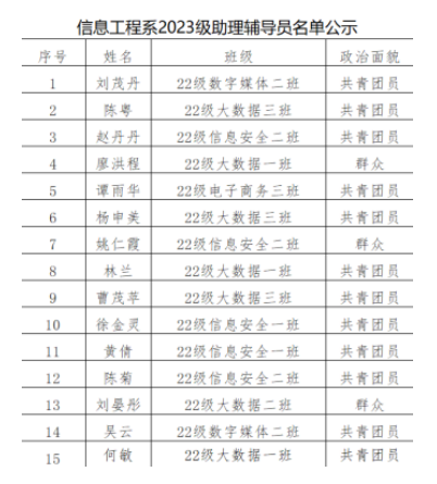 信息工程系開展2023級(jí)高職班級(jí)助理輔導(dǎo)員選拔活動(dòng)
