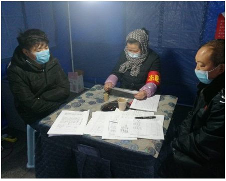 (圖4:信息工程系教師李云龍?jiān)诼閳@街道麻園社區(qū)執(zhí)勤點(diǎn)參與排查登記來往人員)