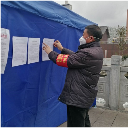 公共教學(xué)部教師黨員楊興參加桂花社區(qū)金水岸點(diǎn)志愿服務(wù),登記外來人員信息、測量體溫、宣傳防控知識等。他說:“‘不忘初心,牢記使命’,關(guān)鍵時刻沖在前,疫不止,戰(zhàn)不休。”