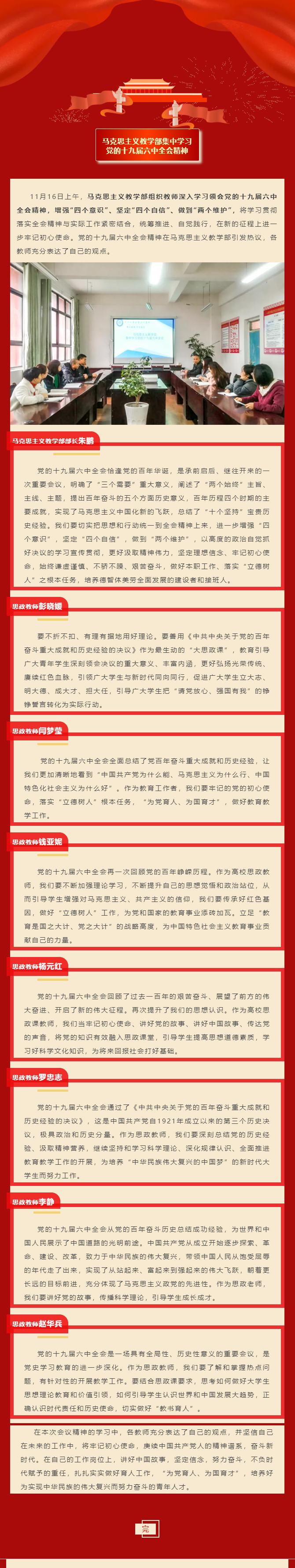 馬克思主義教學部集中學習黨的十九屆六中全會精神