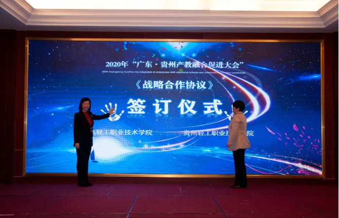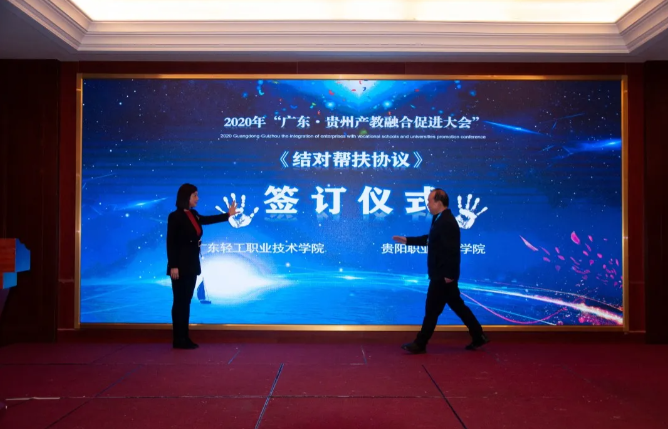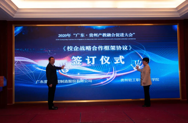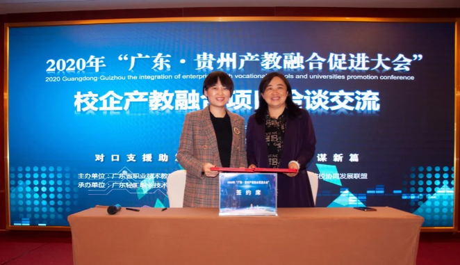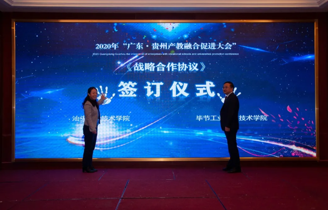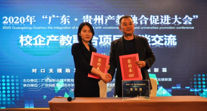 東西部協(xié)作,產(chǎn)教融合助發(fā)展。對(duì)深入推動(dòng)產(chǎn)教融合、校企合作、專業(yè)布局緊扣產(chǎn)業(yè)發(fā)展、教育教學(xué)改革貼近人才培養(yǎng)需求等發(fā)揮了助推作用,將使貴州職業(yè)教育深化產(chǎn)教融合、校企合作打開(kāi)一個(gè)全新的局面。 貴州省教育廳一級(jí)巡視員鞠洪在會(huì)上表示,隨著中央、省一系列政策、措施的出臺(tái)實(shí)施,產(chǎn)教融合發(fā)展將迎來(lái)更好的發(fā)展機(jī)遇。廣東·貴州產(chǎn)教融合促進(jìn)大會(huì)的召開(kāi),為我省各職業(yè)院校與廣東省的各行各業(yè)優(yōu)質(zhì)企業(yè)和職業(yè)院校交流溝通搭建了一個(gè)廣闊的平臺(tái)。期待通過(guò)這個(gè)平臺(tái),粵黔兩地能更大范圍、更寬領(lǐng)域、更深層次開(kāi)展合作,實(shí)現(xiàn)廣東市場(chǎng)+貴州產(chǎn)品,廣東研發(fā)+貴州制造的融合發(fā)展。 廣東輕工職業(yè)技術(shù)學(xué)院黨委書記杜安國(guó)表示,落實(shí)廣黔結(jié)對(duì)幫扶舉措,發(fā)揮企業(yè)與教育的互促力量,在廣東·貴州產(chǎn)教融合促進(jìn)大會(huì)的廣闊平臺(tái)上,為校企合作牽線搭橋,共同建立長(zhǎng)期緊密的合作關(guān)系,促進(jìn)職業(yè)教育高質(zhì)量發(fā)展,實(shí)現(xiàn)職教幫扶促發(fā)展,產(chǎn)教融合謀新篇。 發(fā)揮自身優(yōu)勢(shì),助力合作共贏。畢節(jié)市人民政府副市長(zhǎng)胡愛(ài)斌在會(huì)中坦言,落實(shí)東西部扶貧協(xié)作,畢節(jié)要盡其資源,提升兩省兩市的產(chǎn)教契合度,圍繞自身的優(yōu)勢(shì),加強(qiáng)廣東企業(yè)和貴州教育的結(jié)合優(yōu)勢(shì),為畢節(jié)打造更多的“畢工強(qiáng)將”、奮力人才! 會(huì)上,廣東省向貴州職業(yè)院校捐贈(zèng)阿里云智慧校園3.0系統(tǒng),廣州市億科計(jì)算機(jī)公司向畢節(jié)工業(yè)職業(yè)技術(shù)學(xué)院捐贈(zèng)智慧黨建系統(tǒng);相關(guān)企業(yè)與院校簽訂人才專業(yè)培養(yǎng)、訂單班、校企戰(zhàn)略合作、產(chǎn)教融合項(xiàng)目20余項(xiàng)。廣東星徽精密制造股份有限公司代表參會(huì)企業(yè)進(jìn)行發(fā)言,10余家企業(yè)進(jìn)行了產(chǎn)教融合案例分享。 會(huì)中,許多學(xué)校和企業(yè)單位都精彩紛呈的展示了“自家”的優(yōu)勢(shì)及未來(lái)發(fā)展。很多校企單位在行程中便互相洽談、簽約,這些成功的簽約對(duì)產(chǎn)教融合,校企合作有了更深的意義,推進(jìn)了產(chǎn)教融合,校企合作,校校合作的進(jìn)程,引領(lǐng)時(shí)代的新篇章。 廣東?貴州產(chǎn)教融合促進(jìn)大會(huì)在畢節(jié)召開(kāi),既是山與海的對(duì)話,更是心與心的交流。職業(yè)教育的目標(biāo)是培養(yǎng)技能型的人才,深化走產(chǎn)教融合,校企合作之路,加強(qiáng)產(chǎn)教融合,校企合作,達(dá)到互惠互利,合作共贏的優(yōu)勢(shì),共同培育新時(shí)代高技能人才。