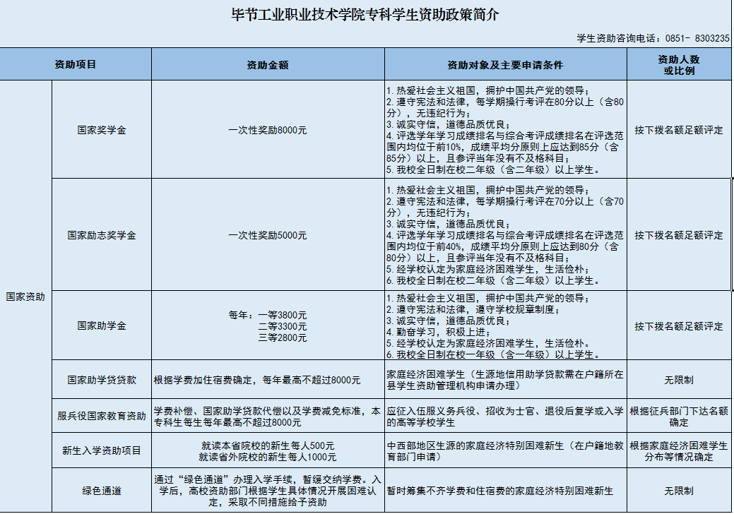 畢節(jié)工業(yè)職業(yè)技術(shù)學(xué)院??茖W(xué)生資助政策簡介