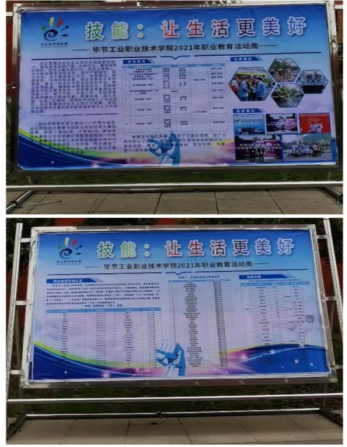 為了營(yíng)造職業(yè)教育活動(dòng)周氛圍,讓職業(yè)教育精神深入學(xué)生心中,我院制作了系列宣傳展板,緊扣職教活動(dòng) “技能:讓生活更美好” 宣傳主題,大力宣傳和展示我院學(xué)生2021年參加貴州省職業(yè)技能大賽獲獎(jiǎng)學(xué)生風(fēng)采。并結(jié)合各專業(yè)特點(diǎn)及國(guó)家職業(yè)技能標(biāo)準(zhǔn)、職業(yè)技能鑒定和考核相關(guān)要求,為即將開(kāi)展的學(xué)院首屆學(xué)生職業(yè)技能大賽做好宣傳動(dòng)員工作,從而鼓勵(lì)廣大學(xué)生努力學(xué)習(xí),練就專業(yè)技能。